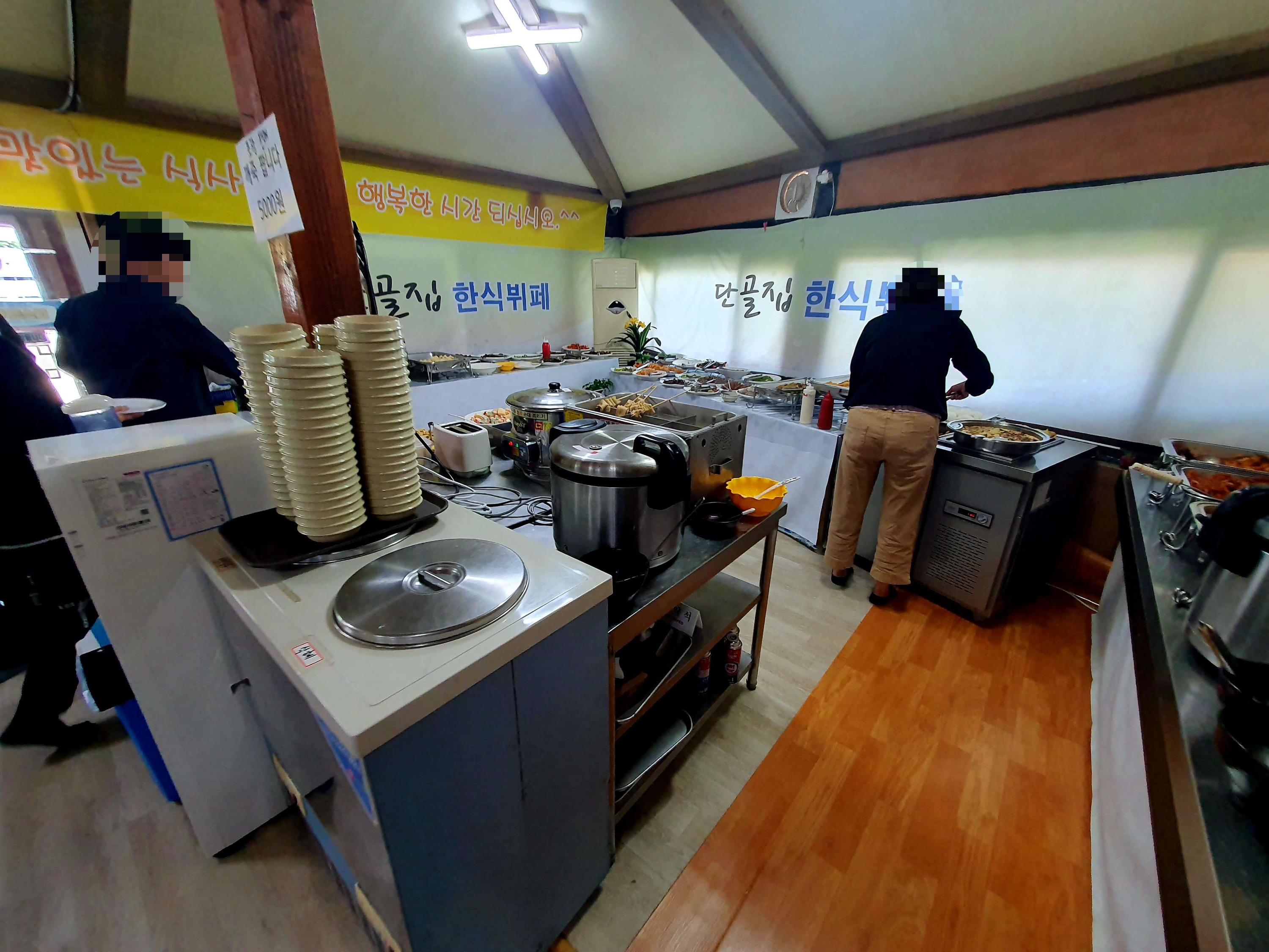 김제 한식뷔페 단골집의 내부인데요, 이렇게 작은 분식집 테이블이 여러개 놓여있는 느낌이네요. 투박하지만 공간 효율 자체는 좋은 듯 합니다.